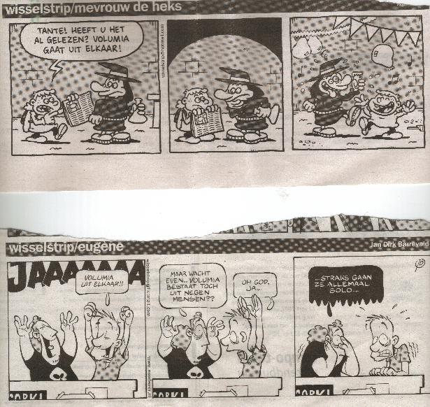 Daaronder zie je Pieter en ik op 8 December 2001 toen Volumia in lelystad kwam en weer daaronder 2 humoristische stripjes over het uit elkaar gaan van volumia die in de Metro stonden :)
